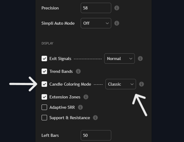 <figure><img src="https://554801738-files.gitbook.io/~/files/v0/b/gitbook-x-prod.appspot.com/o/spaces%2FvoQ4x79LJsB2zbXrQXqx%2Fuploads%2FL2O60IsHA8ESjJbbZZpJ%2FScreenshot%202025-06-19%20172221.png?alt=media&#x26;token=8db9cae5-006f-4a0a-9564-b444e0076763" alt=""><figcaption><p>Toogle Candle Coloring On/Off</p></figcaption></figure>
